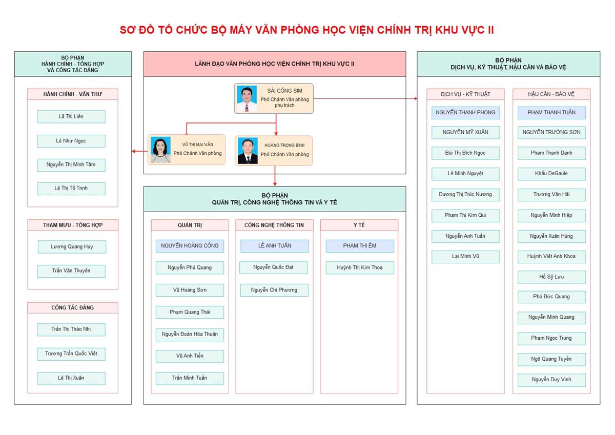 - Đến tháng 5/2023, Văn phòng Học viện II gồm có các phòng trực thuộc sau: