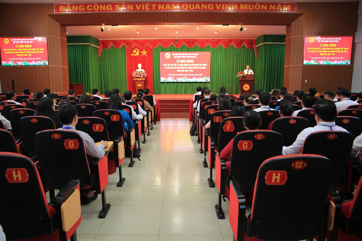Đến dự Lễ khai giảng, về phía Học viện Chính trị khu vực II có sự tham dự của PGS, TS. Nguyễn Tấn Vinh - Ủy viên Ban Chấp hành Đảng bộ Học viện Chính trị quốc gia Hồ Chí Minh, Bí thư Đảng ủy, Giám đốc Học viện; PGS, TS. Nguyễn Thị Tuyết Mai - Phó Bí thư Đảng ủy, Phó Giám đốc Học viện; TS. Đặng Trường Khắc Tâm - Trưởng Ban Quản lý đào tạo, bồi dưỡng. Về phía Thành ủy Thành phố Hồ Chí Minh, có sự hiện diện của đồng chí Nguyễn Văn Minh - Ủy viên Ban Thường vụ, Phó Trưởng Ban Tổ chức Thành ủy; cùng toàn thể học viên của lớp K76.B05 và K76.B06.