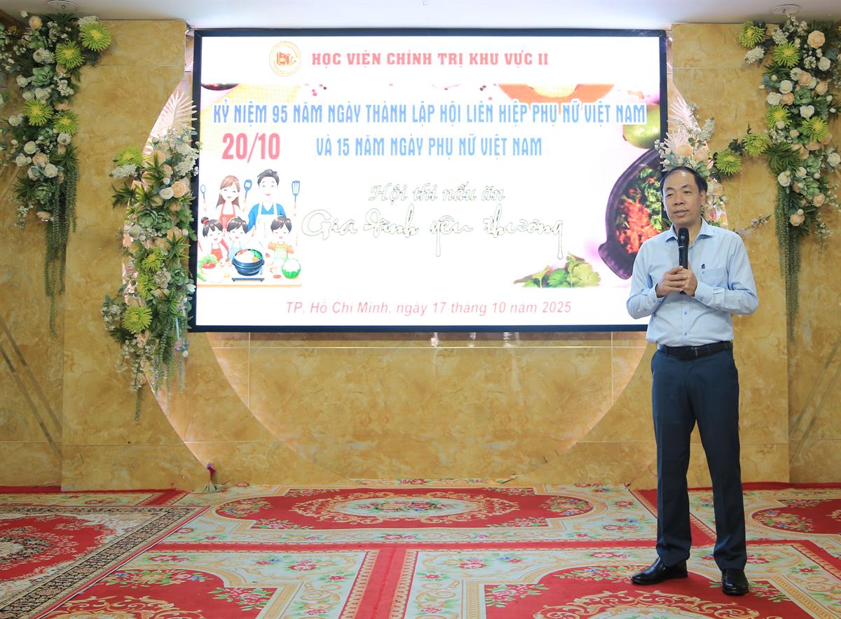 Sáng ngày 17/10/2025, Học viện Chính trị khu vực II tổ chức Hội thi nấu ăn với chủ đề: “Gia đình yêu thương” nhân dịp kỷ niệm 95 năm ngày thành lập Hội Liên hiệp Phụ nữ Việt Nam (20/10/1930 - 20/10/2025) và 15 năm ngày Phụ nữ Việt Nam (20/10/2010 - 20/10/2025).