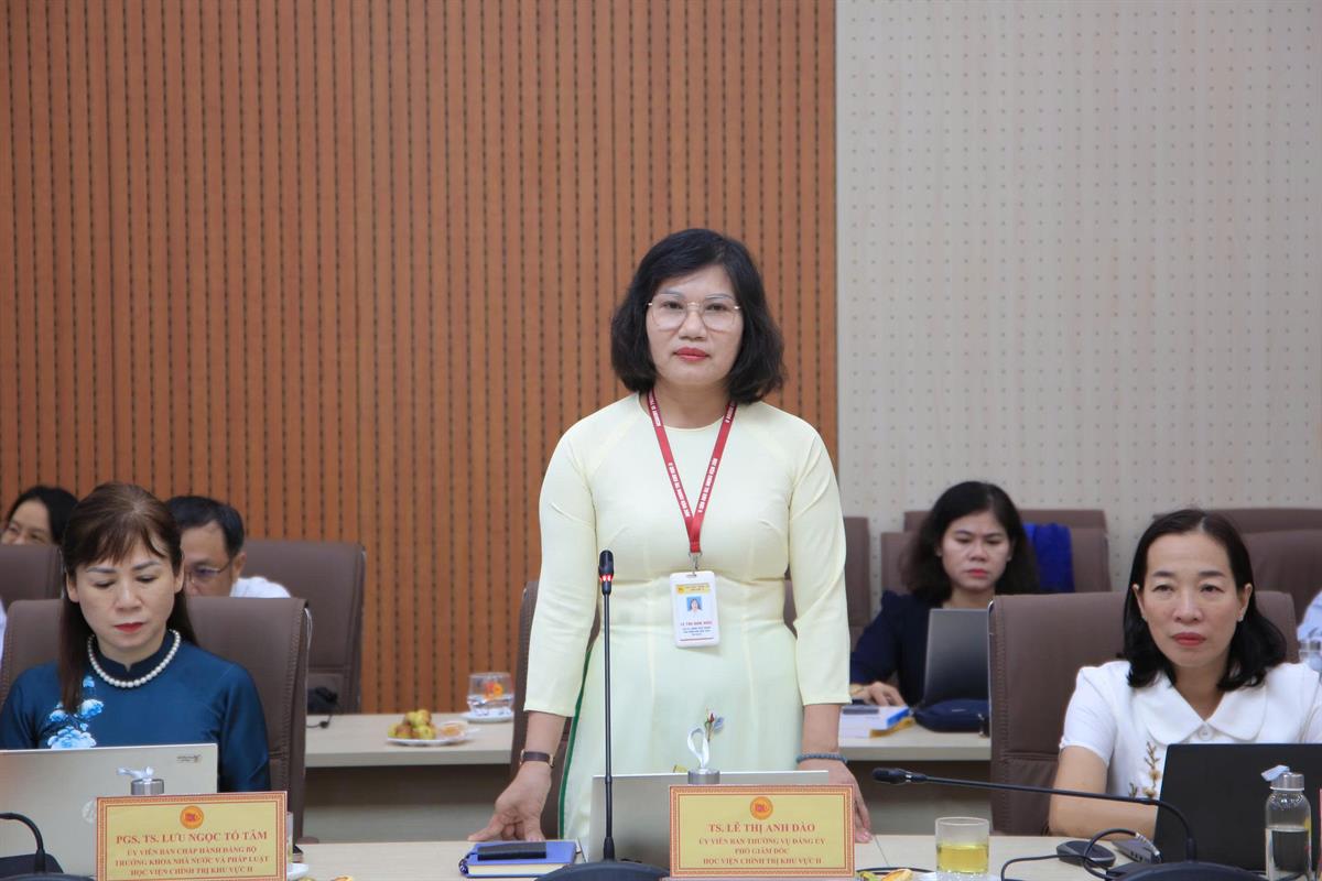 TS. Lê Thị Anh Đào - Ủy viên Ban Thường vụ Đảng ủy, Phó Giám đốc Học viện Chính trị khu vực II phát biểu