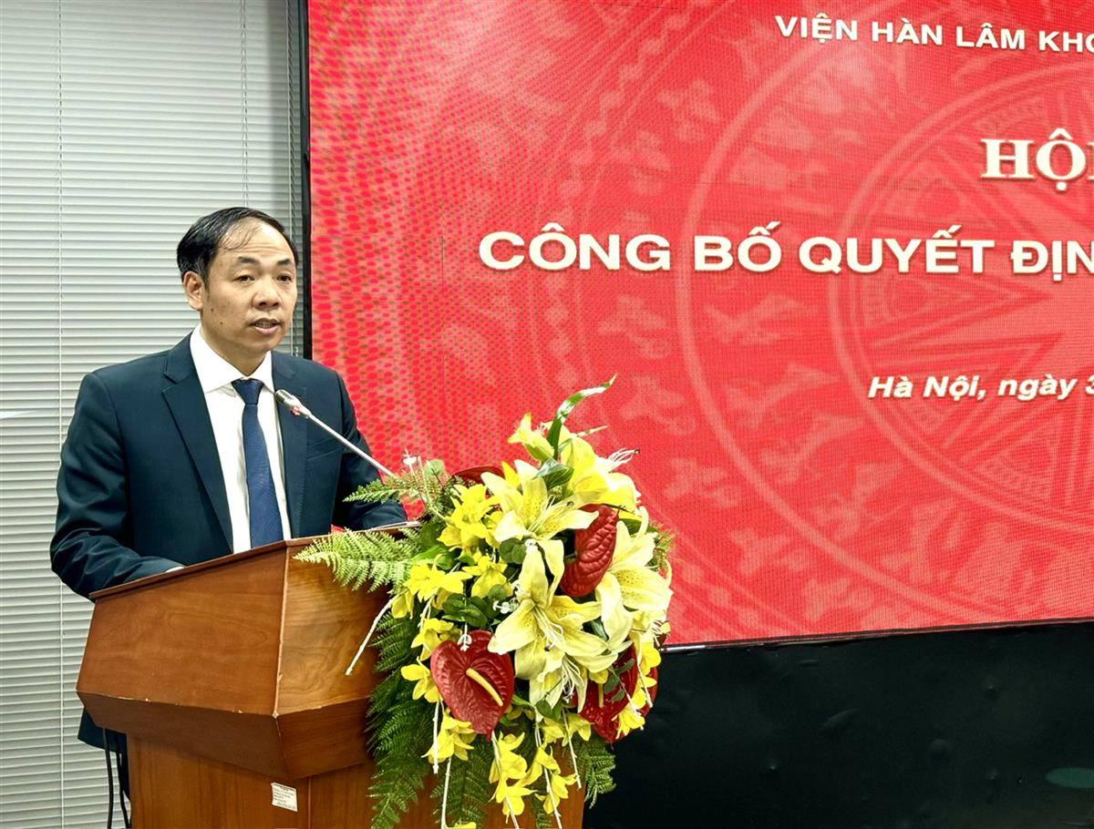 Thay mặt Ban Thường vụ Đảng ủy và Lãnh đạo Viện Hàn lâm, GS.TS. Lê Văn Lợi, Chủ tịch Viện Hàn lâm đã trao Quyết định số 1298/QĐ-KHXH ngày 30 tháng 10 năm 2025 của Chủ tịch Viện Hàn lâm Khoa học xã hội Việt Nam cho đồng chí Phạm Tất Thắng.