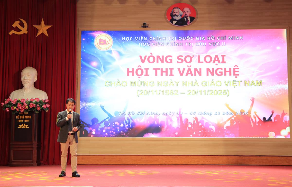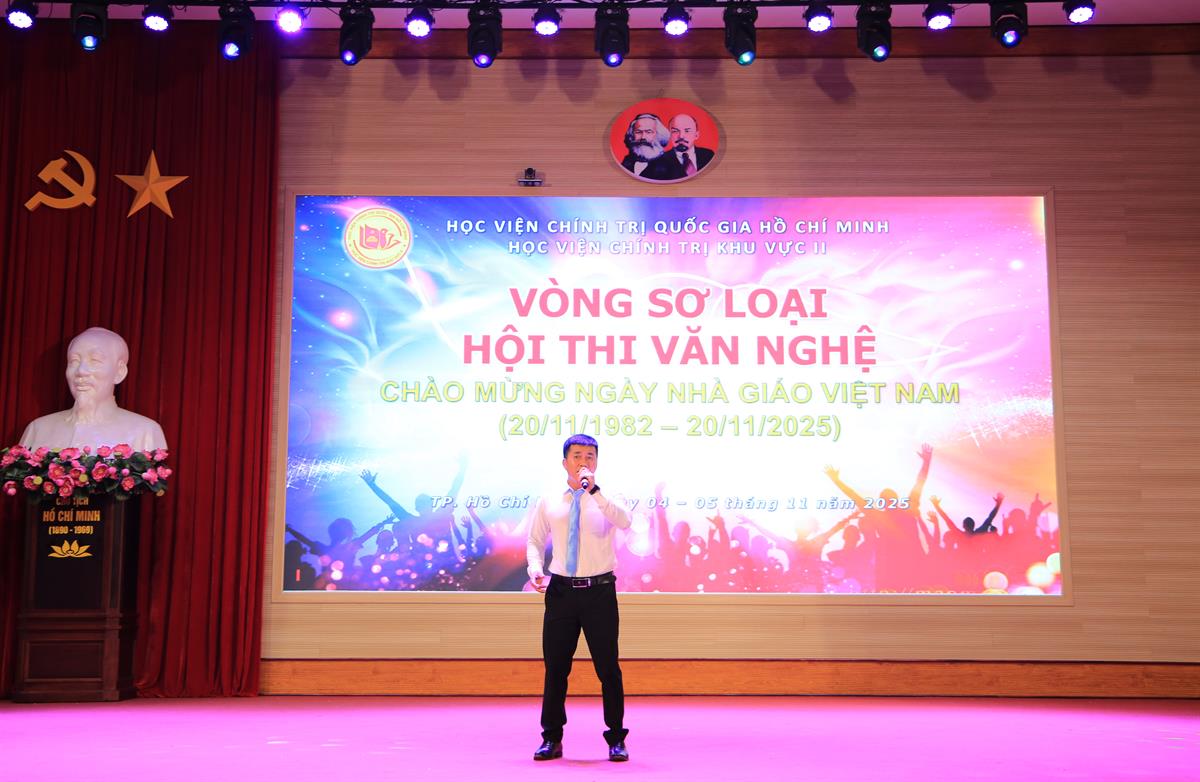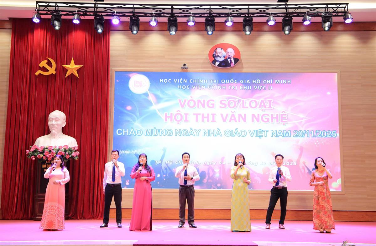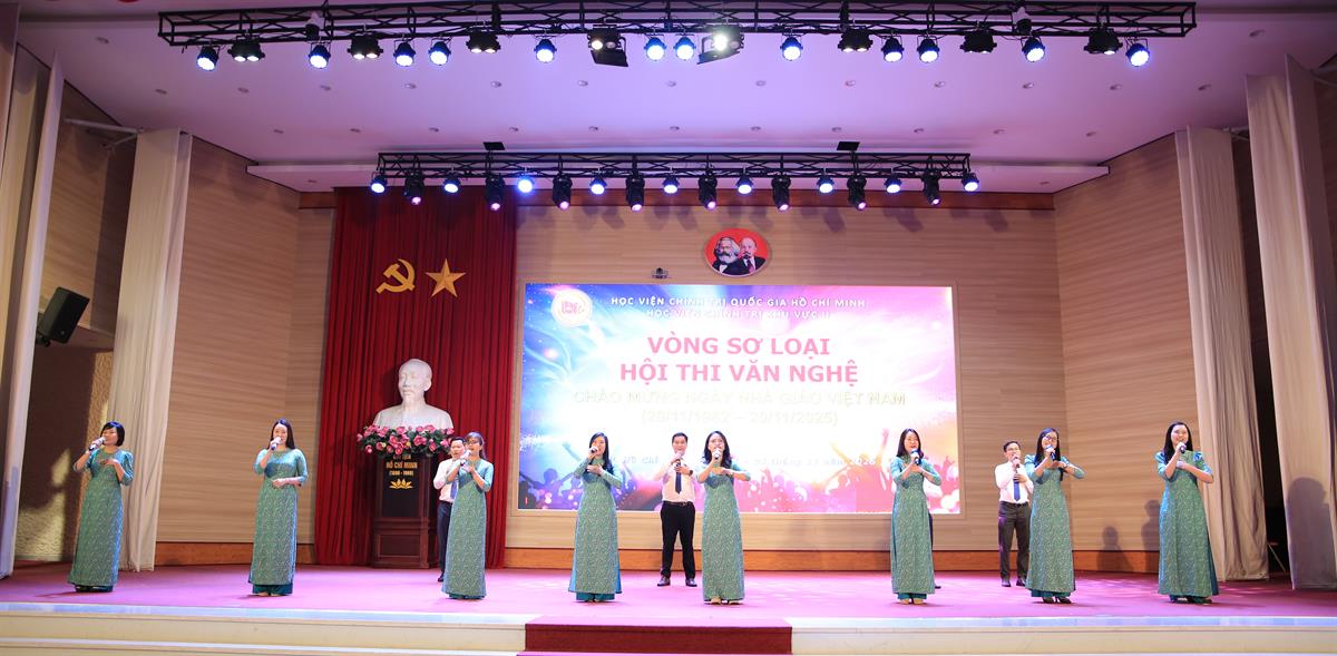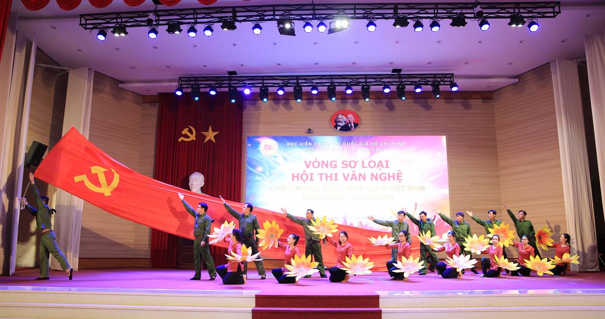 Thực hiện Kế hoạch số 214-KH/HVCTKVII ngày 02/10/2025 của Giám đốc Học viện Chính trị khu vực II về tổ chức Hội thi thể thao, văn nghệ năm học 2025 - 2026, hướng tới kỷ niệm 43 năm ngày Nhà giáo Việt Nam (20/11/1982 - 20/11/2025) và chào mừng Đại hội đại biểu toàn quốc lần thứ XIV của Đảng, chiều ngày 04/11/2025, Vòng sơ loại Hội thi văn nghệ chào mừng ngày Nhà giáo Việt Nam (20/11/1982 - 20/11/2025) đã được tổ chức.