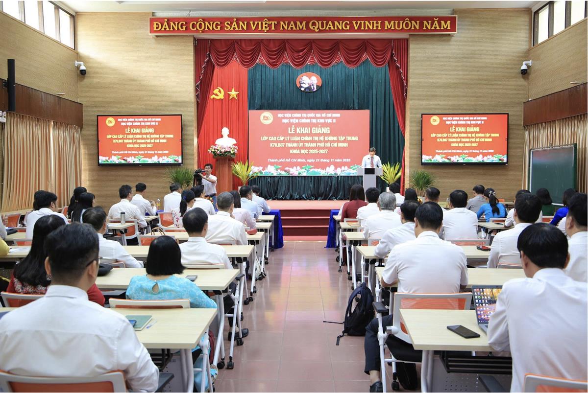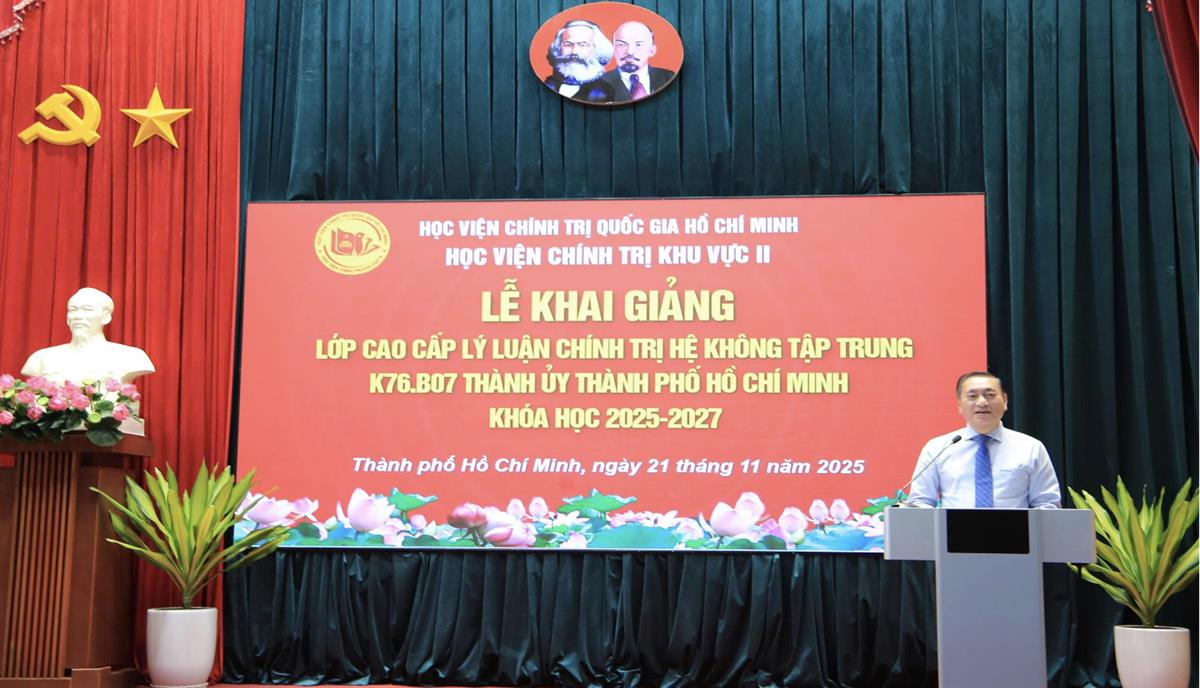 Sáng ngày 21/11/2025, Học viện Chính trị khu vực II tổ chức Lễ khai giảng lớp Cao cấp lý luận chính trị hệ không tập trung K76.B07 Thành ủy Thành phố Hồ Chí Minh, khóa học 2025 - 2027.