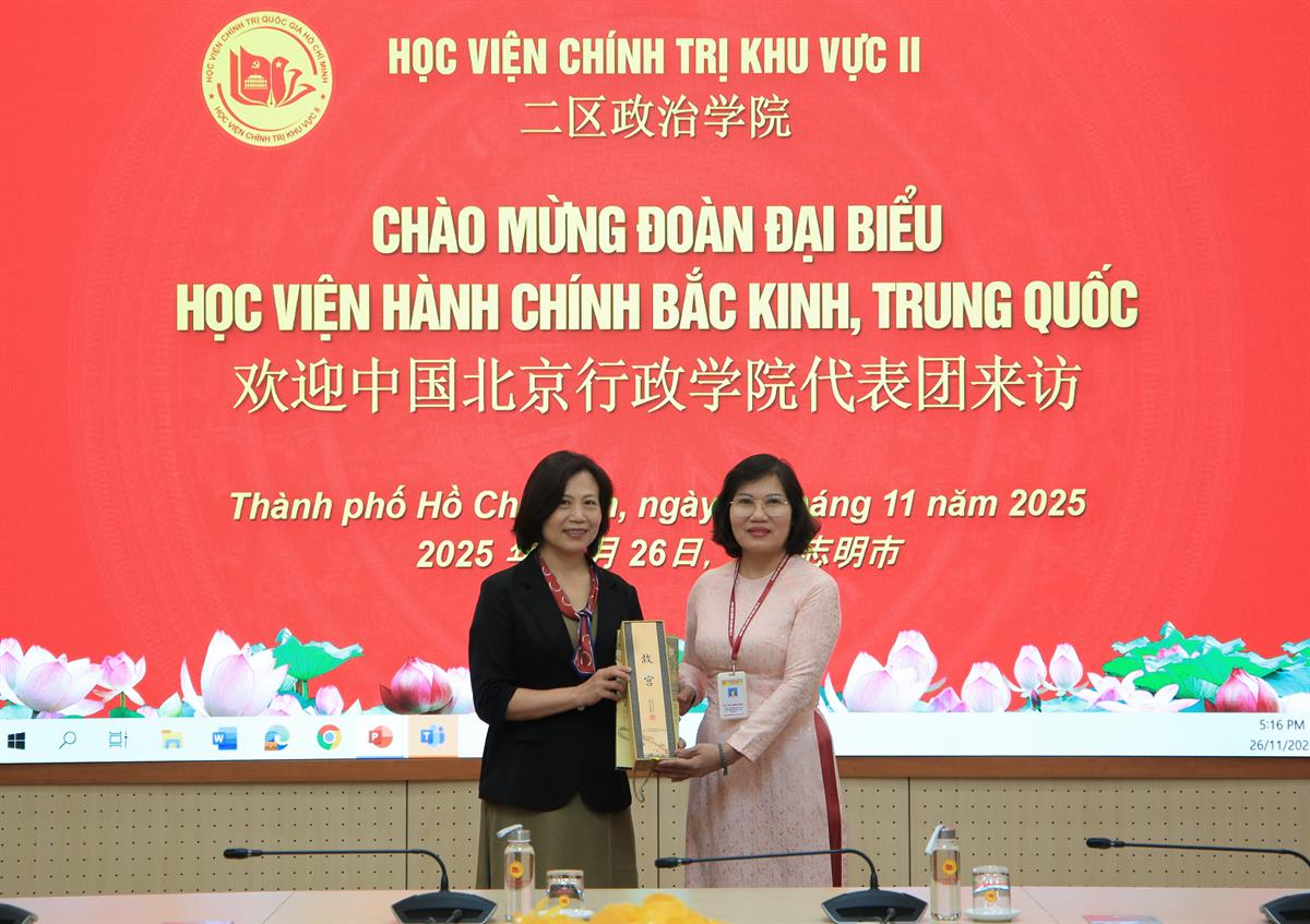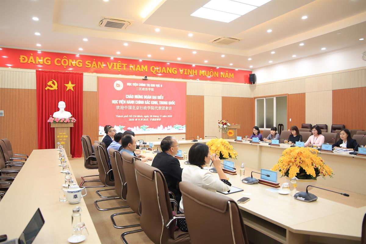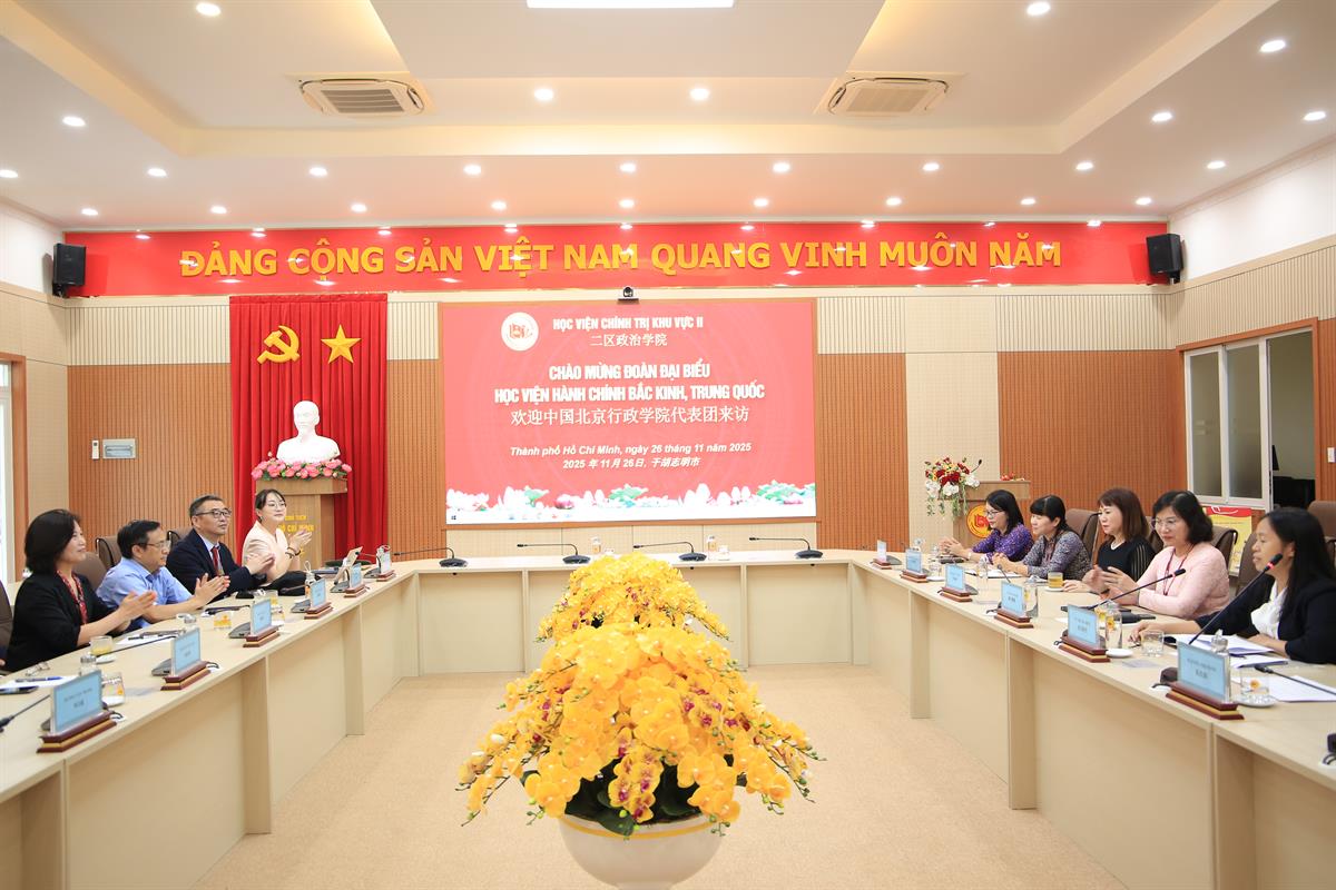 Theo TS. Lê Thị Anh Đào, thời gian qua, Học viện Chính trị khu vực II đã thiết lập quan hệ hợp tác hiệu quả, thiết thực trong nghiên cứu khoa học và chia sẻ kinh nghiệm đào tạo, quản lý cán bộ với nhiều đối tác Trung Quốc, như Học viện Hành chính Thượng Hải, Trường Đảng tỉnh Hà Nam, Trường Đảng tỉnh Quảng Đông,… Năm 2008, đoàn đại biểu của Học viện Chính trị khu vực II trong chuyến công tác tại Học viện Hành chính Thượng Hải đã có dịp ghé thăm Học viện Hành chính Bắc Kinh. Hôm nay, chúng tôi vui mừng và vinh dự được đón tiếp Đoàn sang thăm và làm việc tại Học viện. Đây là dịp ý nghĩa để tăng cường giao lưu, trao đổi kinh nghiệm giữa hai cơ sở đào tạo, bồi dưỡng cán bộ của Đảng, trong bối cảnh quan hệ hợp tác Việt Nam - Trung Quốc đang phát triển, đặc biệt là hợp tác giữa hai Đảng và hệ thống các trường Đảng hai nước. Với ý nghĩa này, TS. Lê Thị Anh Đào khẳng định, buổi làm việc này sẽ mở ra hướng kết nối hợp tác mới giữa hai bên về trao đổi học thuật, phối hợp tổ chức tọa đàm, hội thảo quốc tế,… từ đó thiết lập quan hệ hợp tác thường xuyên, sâu sắc giữa hai Học viện, nhằm làm phong phú thêm mạng lưới hợp tác quốc tế, đóng góp vào sự nghiệp phát triển của mỗi đơn vị.