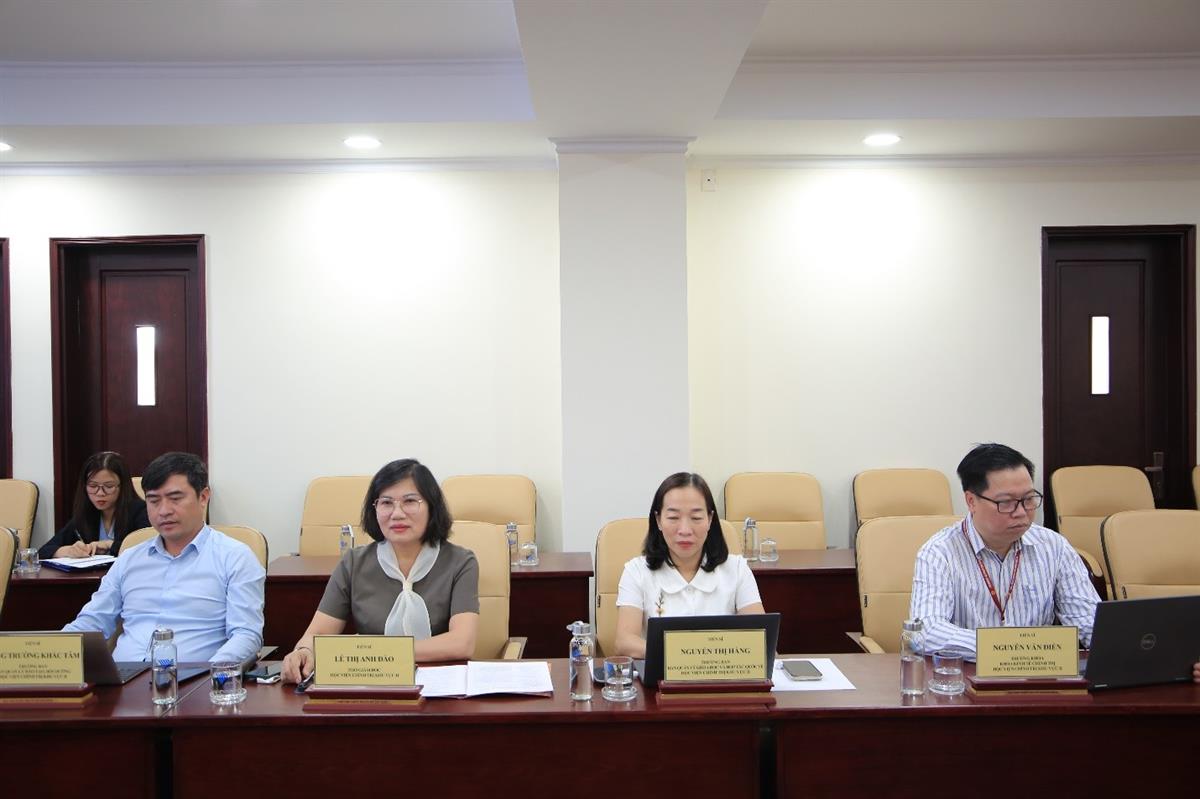 Tại phần trao đổi, hai đơn vị đã thảo luận sâu về nhu cầu phối hợp trong công tác đào tạo và bồi dưỡng, đặc biệt là các chương trình lý luận chính trị, nghiệp vụ và các khóa bồi dưỡng theo quy định dành cho đội ngũ viên chức, sinh viên Đại học Quốc gia Thành phố Hồ Chí Minh. Đồng thời, mở rộng hợp tác trong việc cập nhật kiến thức và trang bị kỹ năng chuyên môn thông qua các chương trình đào tạo do Đại học Quốc gia Thành phố Hồ Chí Minh hỗ trợ. Hai đơn vị thống nhất tăng cường triển khai các hoạt động nghiên cứu khoa học theo hướng liên kết, bao gồm phối hợp thực hiện đề tài, chia sẻ chuyên môn nghiên cứu và tổ chức hội thảo, tọa đàm cũng như các hoạt động học thuật khác nhằm củng cố mạng lưới chuyên gia giữa hai đơn vị. Việc thiết kế các chương trình đào tạo và bồi dưỡng chung, dựa trên thế mạnh đặc thù của mỗi bên, được xác định là trọng tâm hợp tác trong giai đoạn tới. Đồng thời, hai đơn vị sẽ thúc đẩy mạnh mẽ các hoạt động nghiên cứu và trao đổi học thuật, nhằm mở rộng các tiếp cận đa chiều phục vụ công tác tham vấn chính sách cho Trung ương. Thông qua đó, sự hợp tác chiến lược này kỳ vọng sẽ nâng cao chất lượng đóng góp của mỗi đơn vị đối với sự phát triển chung của đất nước.