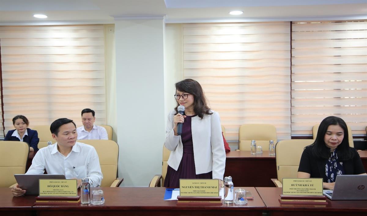 Phát biểu tại Buổi làm việc, TS. Lê Thị Anh Đào cho biết, Học viện Chính trị khu vực II đánh giá cao uy tín học thuật, chất lượng đào tạo cũng như năng lực các chuyên gia của Đại học Quốc gia Thành phố Hồ Chí Minh. TS. Lê Thị Anh Đào kỳ vọng hai đơn vị sẽ xây dựng những chương trình đào tạo và bồi dưỡng gắn với yêu cầu thực tiễn phát triển, đặc biệt chú trọng hình thành các nhóm nghiên cứu liên kết. Đây được xem là cơ chế quan trọng giúp giảng viên hai bên tăng cường giao lưu học thuật, nâng cao năng lực nghiên cứu và thúc đẩy hoạt động công bố quốc tế; đồng thời đẩy mạnh phối hợp chia sẻ dữ liệu, kết nối mạng lưới chuyên gia và cùng tham gia tư vấn chính sách cho các địa phương, từ đó phát huy thế mạnh đặc thù của mỗi đơn vị trong lĩnh vực khoa học xã hội và hoạch định chính sách công. Đối với công tác kiểm định chất lượng giáo dục, TS. Lê Thị Anh Đào mong muốn tiếp nhận sự hỗ trợ từ Đại học Quốc gia Thành phố Hồ Chí Minh, một đơn vị có bề dày kinh nghiệm và uy tín trong lĩnh vực này. TS. Lê Thị Anh Đào tin tưởng rằng, sự hợp tác sâu rộng, đồng bộ sẽ tạo động lực nâng cao chất lượng đào tạo và củng cố hiệu quả phục vụ cộng đồng của cả hai đơn vị.