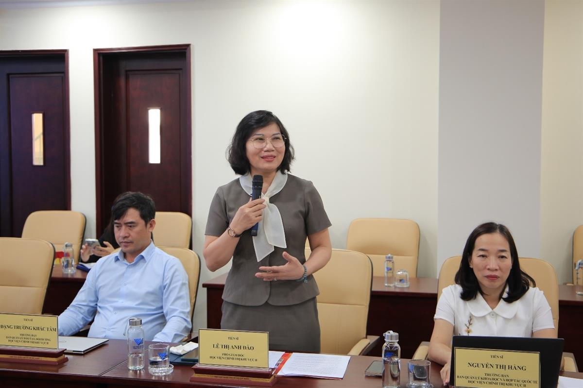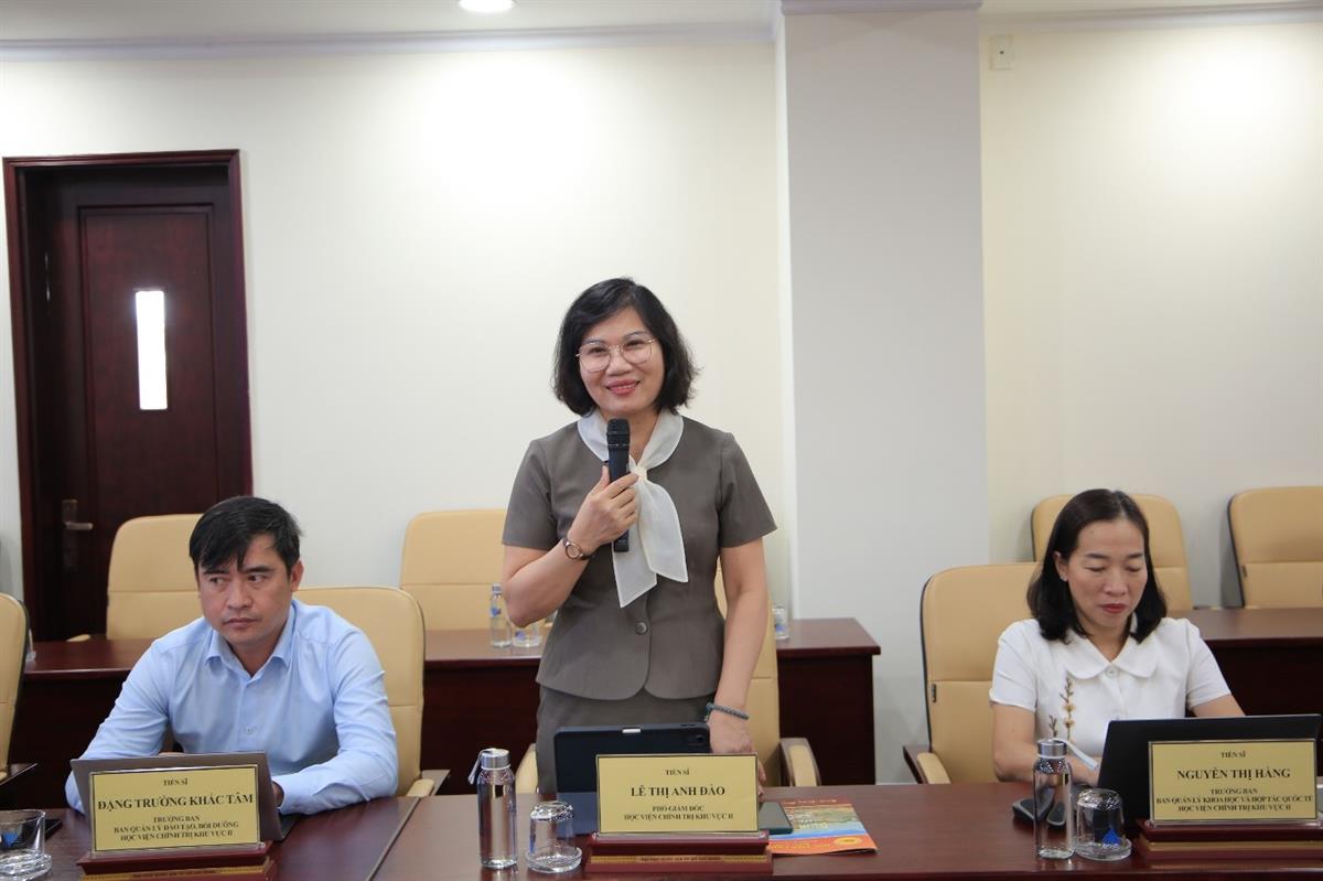 TS. Lê Thị Anh Đào - Ủy viên Ban Thường vụ Đảng ủy, Phó Giám đốc Học viện Chính trị khu vực II phát biểu