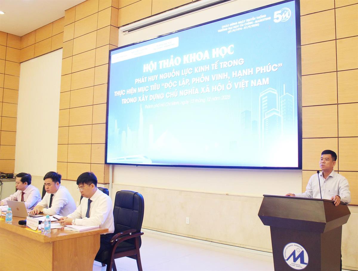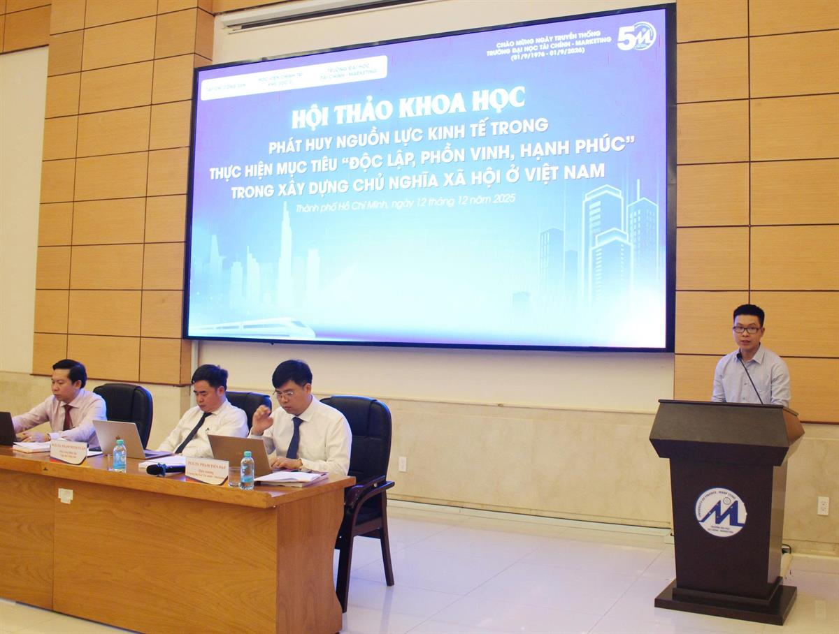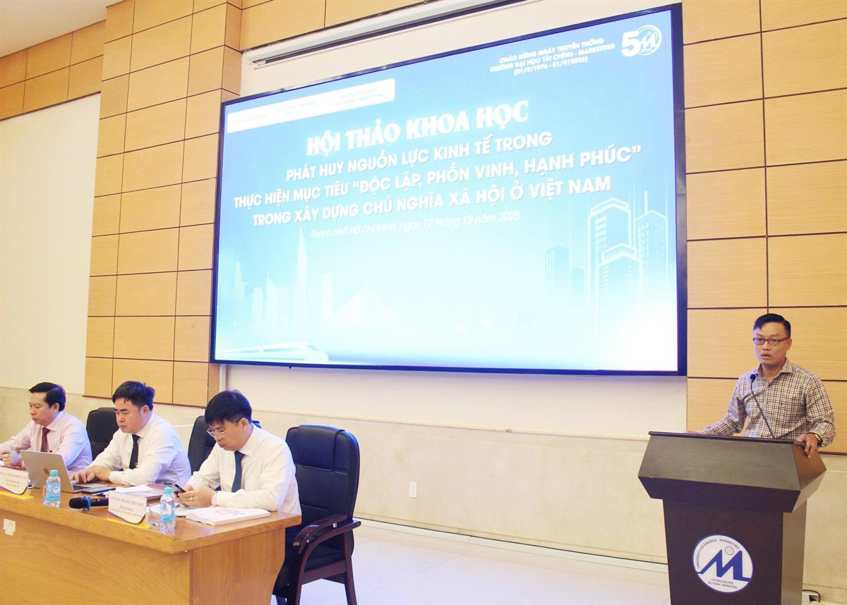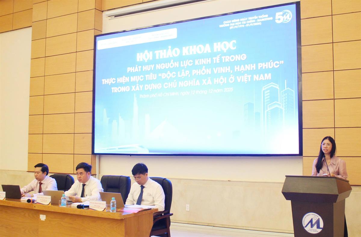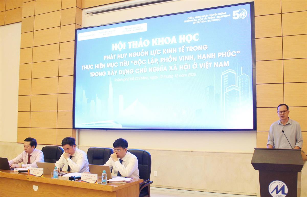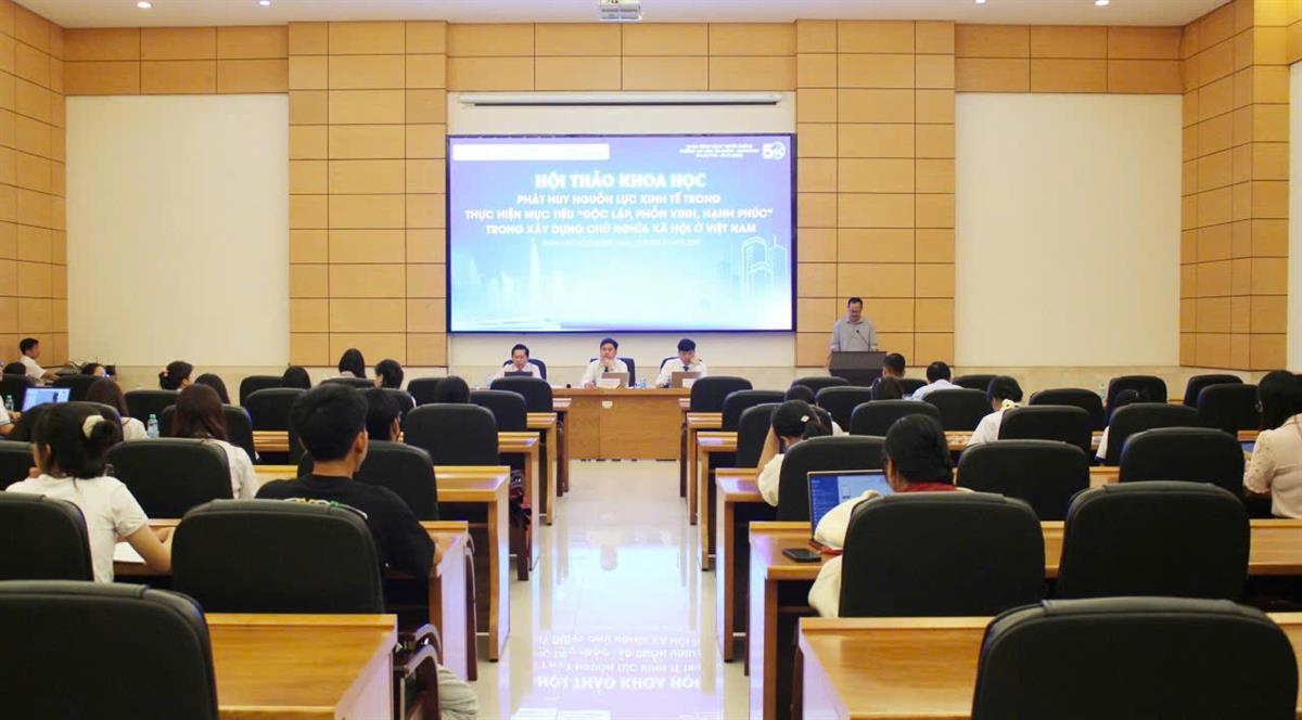Tại Hội thảo, đại biểu tập trung thảo luận, trao đổi các vấn đề sau: Tăng cường liên kết nội vùng và liên kết vùng nhằm khai thác hiệu quả tiềm năng kinh tế vùng Đông Nam bộ; Phát huy nguồn lực kinh tế trong thực hiện mục tiêu “Độc lập, phồn vinh, hạnh phúc”, trong xây dựng chủ nghĩa xã hội ở Việt Nam - Một số vấn đề từ thực tiễn tại Thành phố Hồ Chí Minh hiện nay; Kinh tế di sản - Nguồn lực quan trọng để phát triển bền vững đất nước; Tư tưởng Hồ Chí Minh về vai trò của kinh tế tư nhân và những vấn đề đặt ra trong bối cảnh hội nhập; Thuận lợi khó khăn trong phát huy nguồn lực kinh tế ở Việt Nam; Mối quan hệ giữa tăng trưởng kinh tế và bảo đảm công bằng xã hội trong xây dựng chủ nghĩa xã hội ở Việt Nam; Hoàn thiện thể chế thúc đẩy chuyển đổi số, kinh tế số gắn với mô hình phát triển kinh tế mới tại Việt Nam.