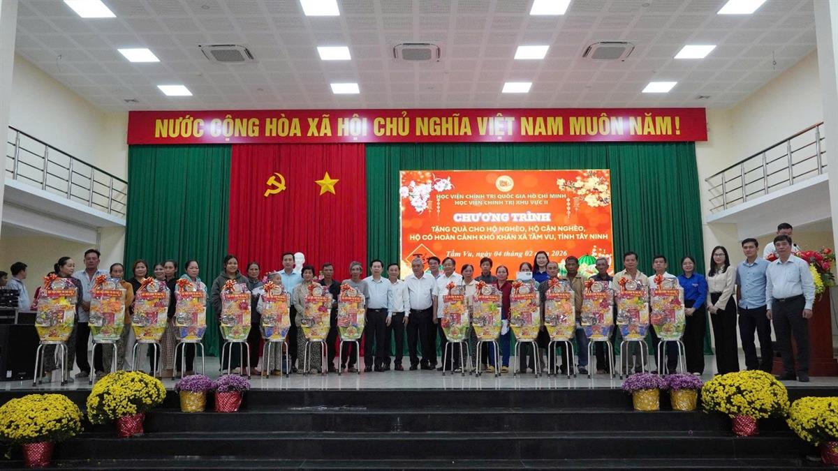 Thực hiện Kế hoạch số 30-KH/HVCTKV II ngày 30/01/2026, ngày 04/02/2026, Học viện Chính trị khu vực II tổ chức đoàn công tác về nguồn, thăm tặng quà cho hộ gia đình khó khăn tại tỉnh Tây Ninh.