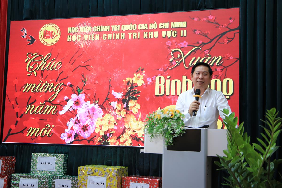 Bước sang năm 2026, PGS, TS. Nguyễn Tấn Vinh nhấn mạnh, yêu cầu, nhiệm vụ đặt ra ngày càng cao, đòi hỏi toàn Học viện không chỉ hoàn thành tốt nhiệm vụ mà còn nâng cao chất lượng, giữ vững nền nếp, kỷ cương; xây dựng môi trường làm việc dân chủ, hiện đại, chuyên nghiệp. Đồng chí đề nghị, mỗi đơn vị, cá nhân viên chức, người lao động cần phát huy tinh thần chủ động, trách nhiệm, tăng cường phối hợp để tạo sức mạnh tổng hợp trong toàn Học viện; đồng thời bày tỏ tin tưởng rằng, với truyền thống đoàn kết, tinh thần nêu gương, đổi mới, sáng tạo, Học viện Chính trị khu vực II sẽ tiếp tục hoàn thành tốt nhiệm vụ chính trị trong năm 2026.