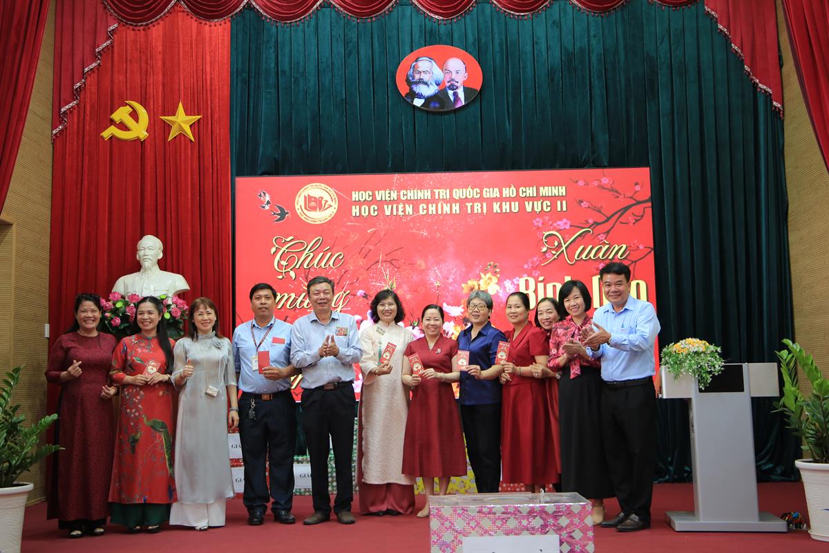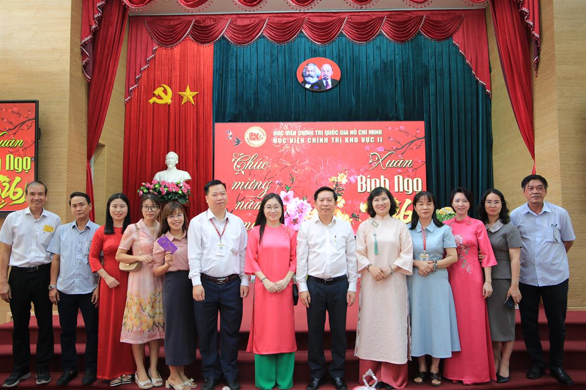 Tham dự buổi Lễ, có sự hiện diện của PGS, TS. Nguyễn Tấn Vinh - Ủy viên Ban Chấp hành Đảng bộ Học viện Chính trị quốc gia Hồ Chí Minh, Bí thư Đảng ủy, Giám đốc Học viện Chính trị khu vực II; PGS, TS. Nguyễn Thị Tuyết Mai - Phó Bí thư Đảng ủy, Phó Giám đốc Học viện Chính trị khu vực II; TS. Lê Thị Anh Đào - Ủy viên Ban Thường vụ Đảng ủy, Phó Giám đốc Học viện Chính trị khu vực II; các đồng chí trong Ban Chấp hành Đảng bộ, Chi hội trưởng Chi hội Cựu chiến binh, Ban Chấp hành Đoàn Thanh niên; cùng toàn thể viên chức, người lao động của Học viện.