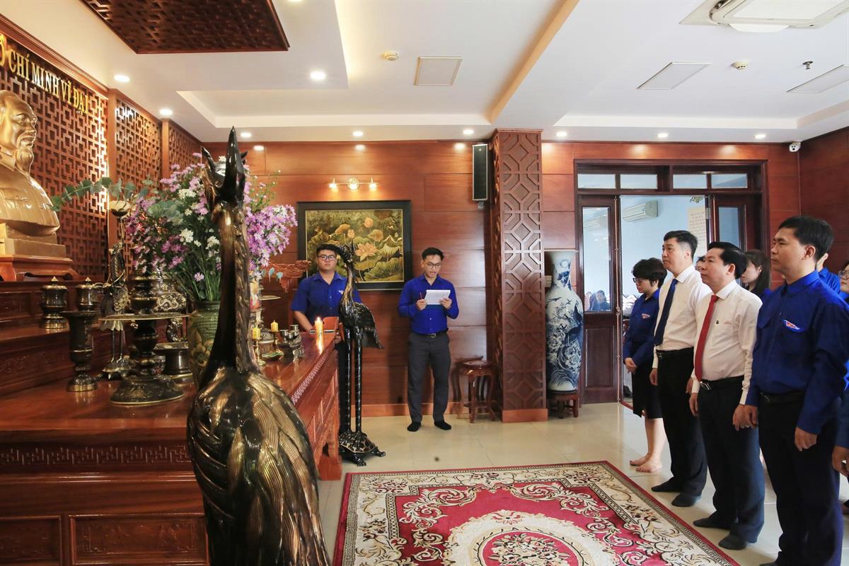 Tiếp đó, đoàn đại biểu dâng hương tại Phòng Tưởng niệm Chủ tịch Hồ Chí Minh, bày tỏ lòng thành kính và tri ân sâu sắc đối với công lao to lớn của Người, lãnh tụ thiên tài của Đảng và dân tộc, người sáng lập và rèn luyện Đoàn Thanh niên Cộng sản Hồ Chí Minh.