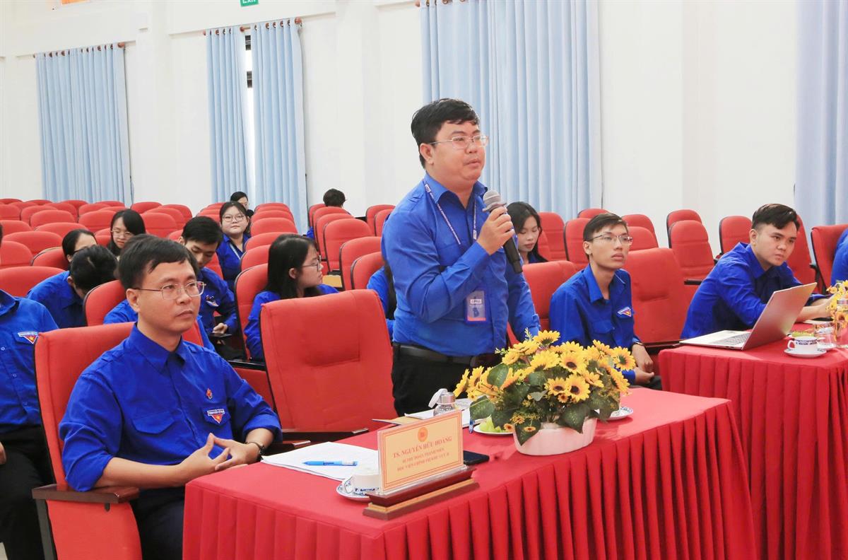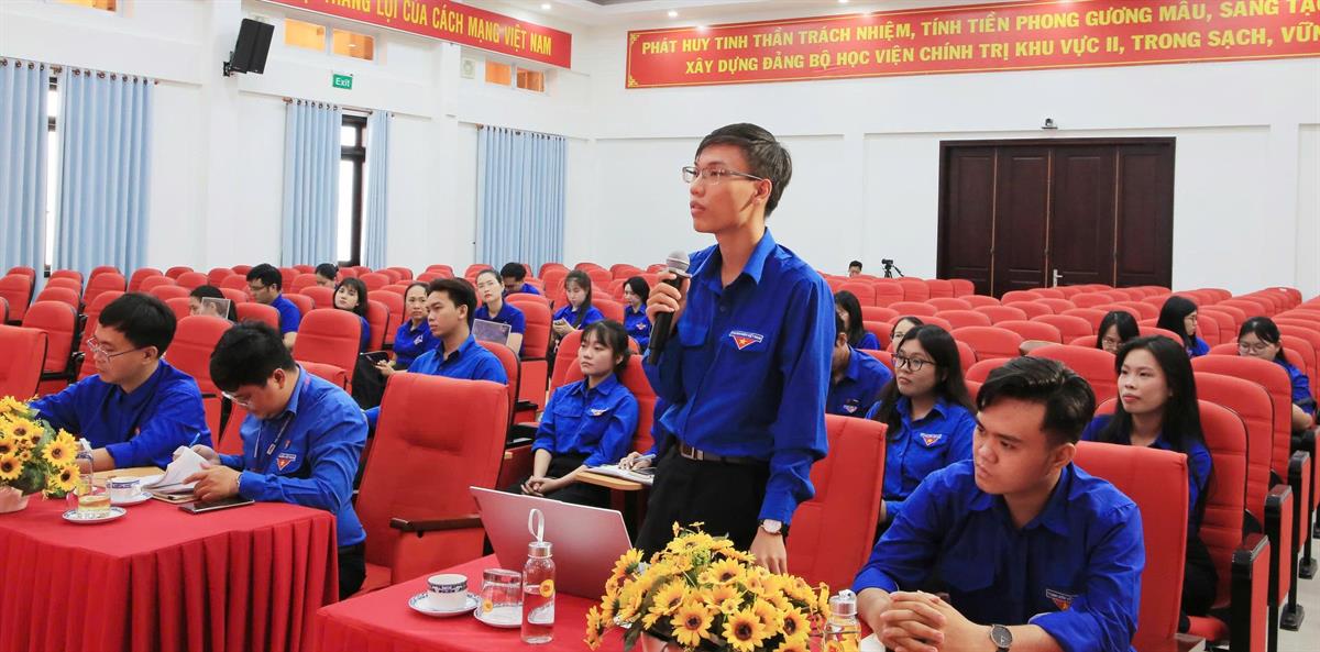 TS. Nguyễn Hữu Hoàng - Bí thư Đoàn Thanh niên Học viện Chính trị khu vực II trình bày diễn văn