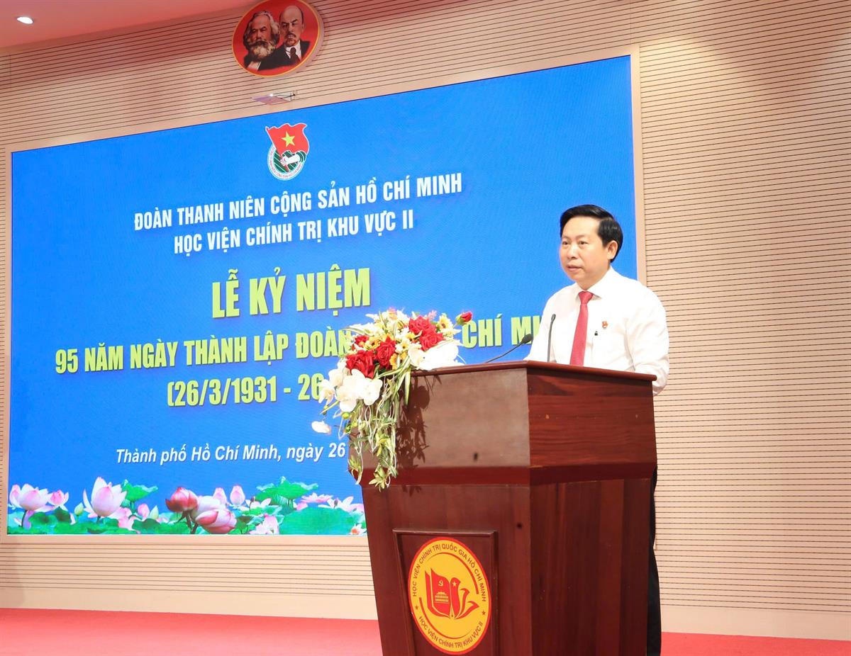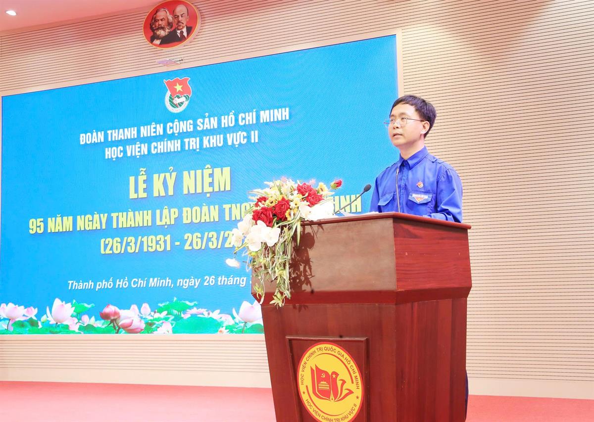 Tại Lễ kỷ niệm, đồng chí Nguyễn Hữu Hoàng đã trình bày diễn văn ôn lại truyền thống Đoàn Thanh niên Cộng sản Hồ Chí Minh. Đồng chí nhấn mạnh, trải qua 95 năm xây dựng và trưởng thành, Đoàn Thanh niên Cộng sản Hồ Chí Minh luôn khẳng định vai trò là lực lượng xung kích, đội dự bị tin cậy của Đảng; đồng thời khẳng định tuổi trẻ Học viện Chính trị khu vực II đã và đang phát huy truyền thống vẻ vang, không ngừng học tập, rèn luyện, chủ động, sáng tạo trong thực hiện nhiệm vụ chính trị, góp phần xây dựng Học viện Chính trị khu vực II ngày càng phát triển.