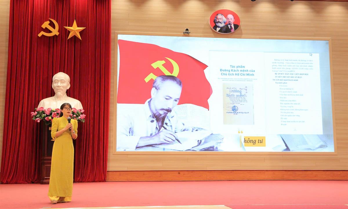 Phần thi của thí sinh Mai Thanh Sơn - Học viên lớp Cao cấp lý luận chính trị hệ tập trung K76.A04 đạt giải Nhất Bảng B