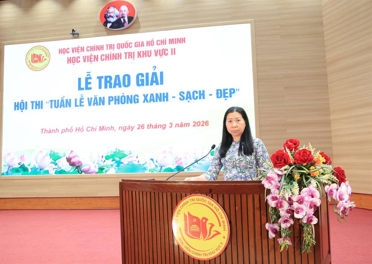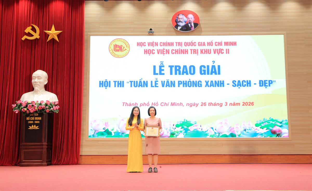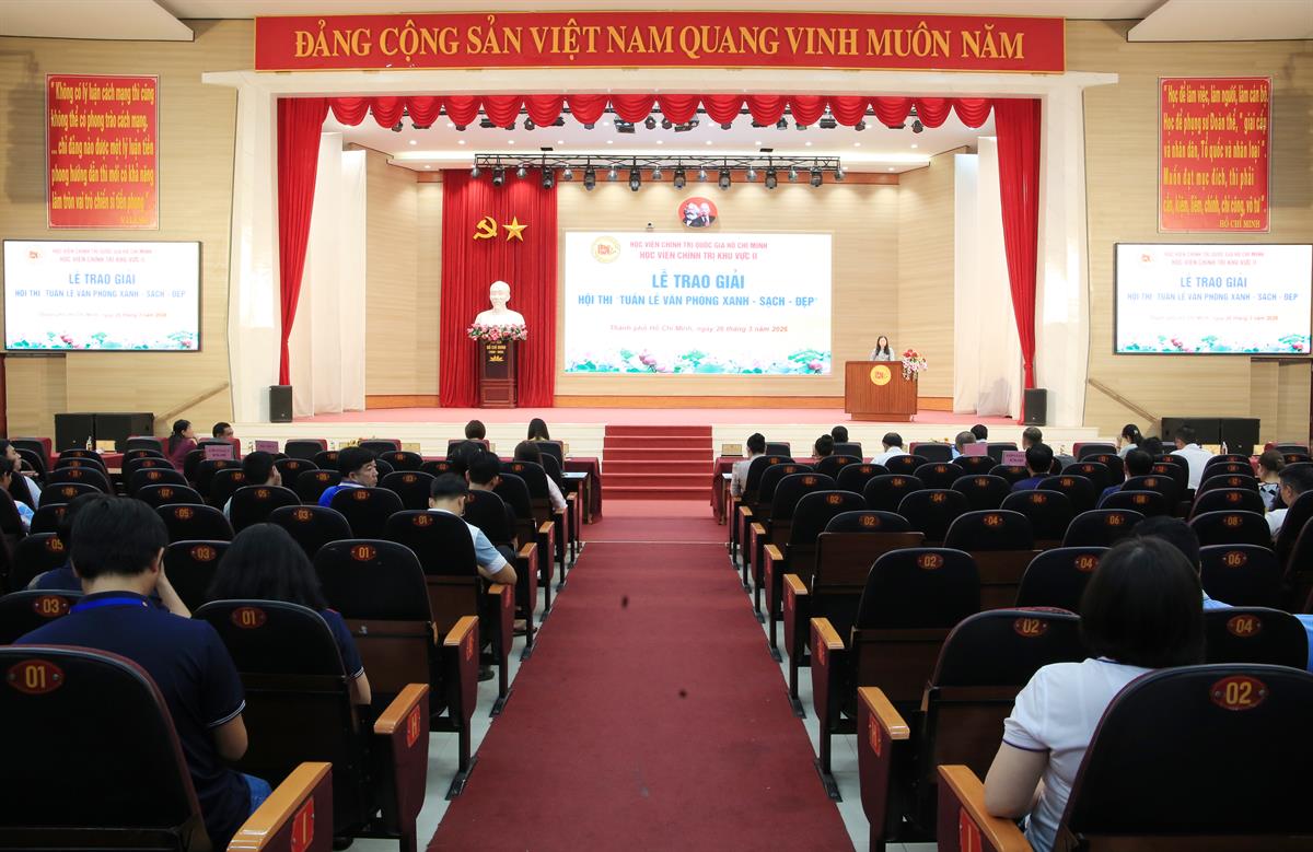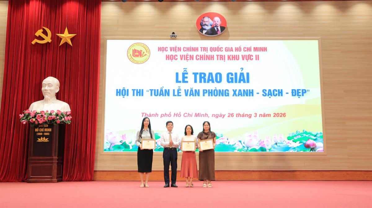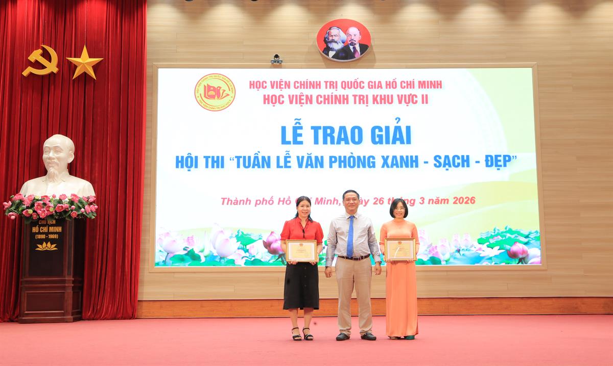 Căn cứ Thông báo số 160-TB/BHVCTKVII về việc tham dự các sự kiện ngày 26/3/2026, chiều cùng ngày, Học viện Chính trị khu vực II tổ chức Lễ trao giải Cuộc thi “Tuần lễ Xanh - Sạch - Đẹp”.