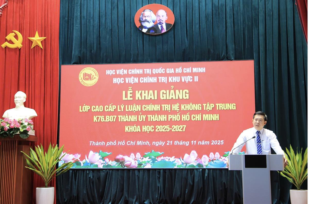 Sáng ngày 21/11/2025, Học viện Chính trị khu vực II tổ chức Lễ khai giảng lớp Cao cấp lý luận chính trị hệ không tập trung K76.B07 Thành ủy Thành phố Hồ Chí Minh, khóa học 2025 - 2027.